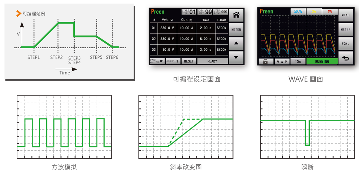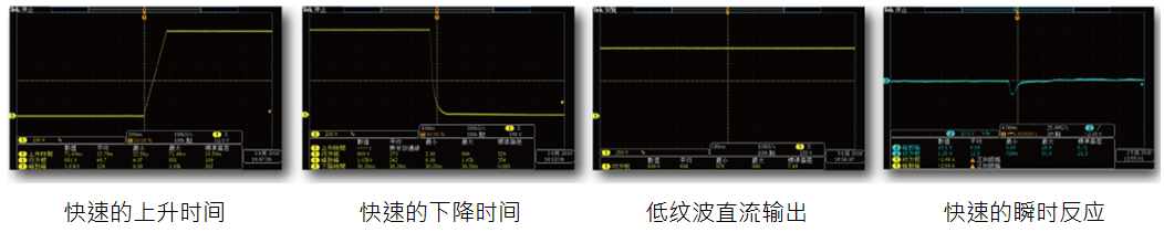 ? 瞬時反應(yīng)與開關(guān)機(jī)時間測試:以低紋波、高精度、高穩(wěn)壓率的特性,搭配快速的反應(yīng)速度和爬升率,適合高效率地模擬各種直流電源測試。