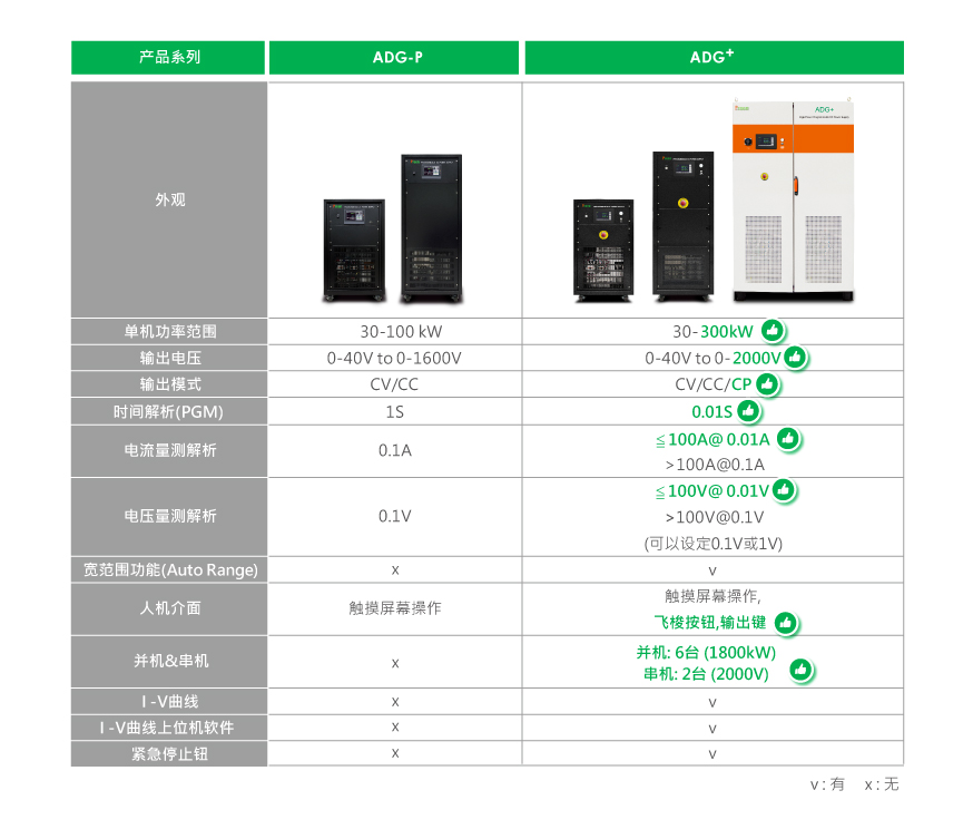 艾普斯電源全新的ADG+系列提供全方位的效能優(yōu)化,除外觀配有大型7寸觸控螢?zāi)弧w梭按鈕與緊急停止按鈕,增加操作上的便捷性。擁有低紋波(0.05%)、高精度(≤0.1%)、反應(yīng)速度快(≤4?20ms)等特點(diǎn),無論是在單機(jī)容量、功率輸出、可程式功能、時(shí)間解析、電壓/電流量測解析都有大幅的提升,方便用戶做更復(fù)雜、精密的測試。透過選配的 I-V曲線功能,可輕松模擬太陽能電池陣列之不同特性,且產(chǎn)品符合CE與RoHs認(rèn)證,提供了電動(dòng)汽車電機(jī)、DC/DC轉(zhuǎn)換器、儲(chǔ)能系統(tǒng)(ESS)、光伏逆變器等應(yīng)用領(lǐng)域更高規(guī)格的測試解決方案。