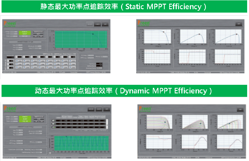根據(jù)光伏逆變器規(guī)格設(shè)定開路電壓(Voc)/短路電流(Isc)/最大功率點(diǎn)的電壓(Vmpp)和電流(Impp),系統(tǒng)將自動(dòng)建立能模擬太陽能面板在一般日照度下的I-V曲線。透過系統(tǒng)內(nèi)部DSP晶片運(yùn)算即可演算出P-V及I-V曲線,輸出中具備動(dòng)態(tài)日照可調(diào)功能。