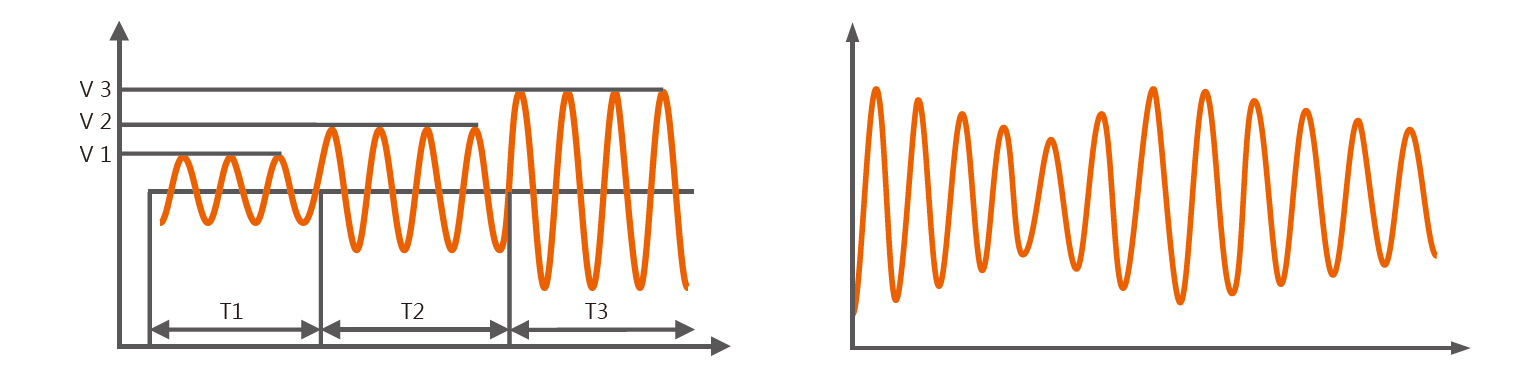 AFV 具有步階和漸變模擬功能,用戶可直接透過觸摸屏設置電壓或頻率步階或漸變模擬,內建多組記憶組,最高可迴圈255 次,記憶組中可設置輸出電壓、輸出頻率、及每個步階的執行時間。